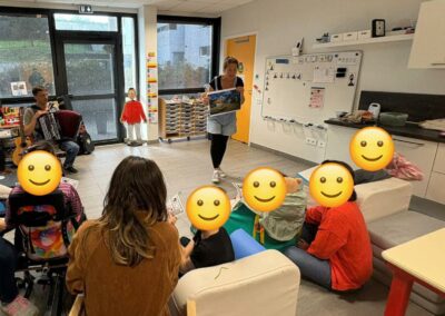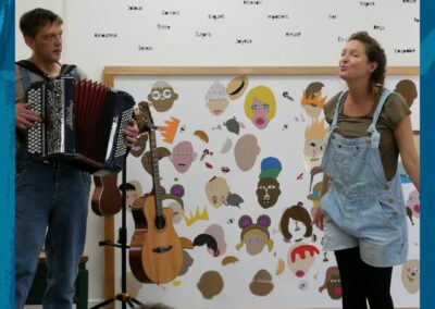 L’oie qu’aboie propose un spectacle improvisé et interactif. Chaque conte est unique car tout y est improvisé (histoire, musique). Pour ce faire, les enfants sont invités à exprimer leurs idées tout au long du spectacle. Selon l’histoire que nous jouerons, il peut également être proposé au public de venir sur scène ou encore de participer à l’ambiance musicale.